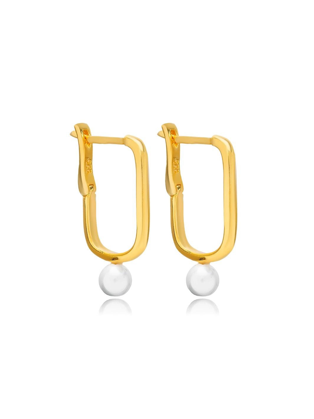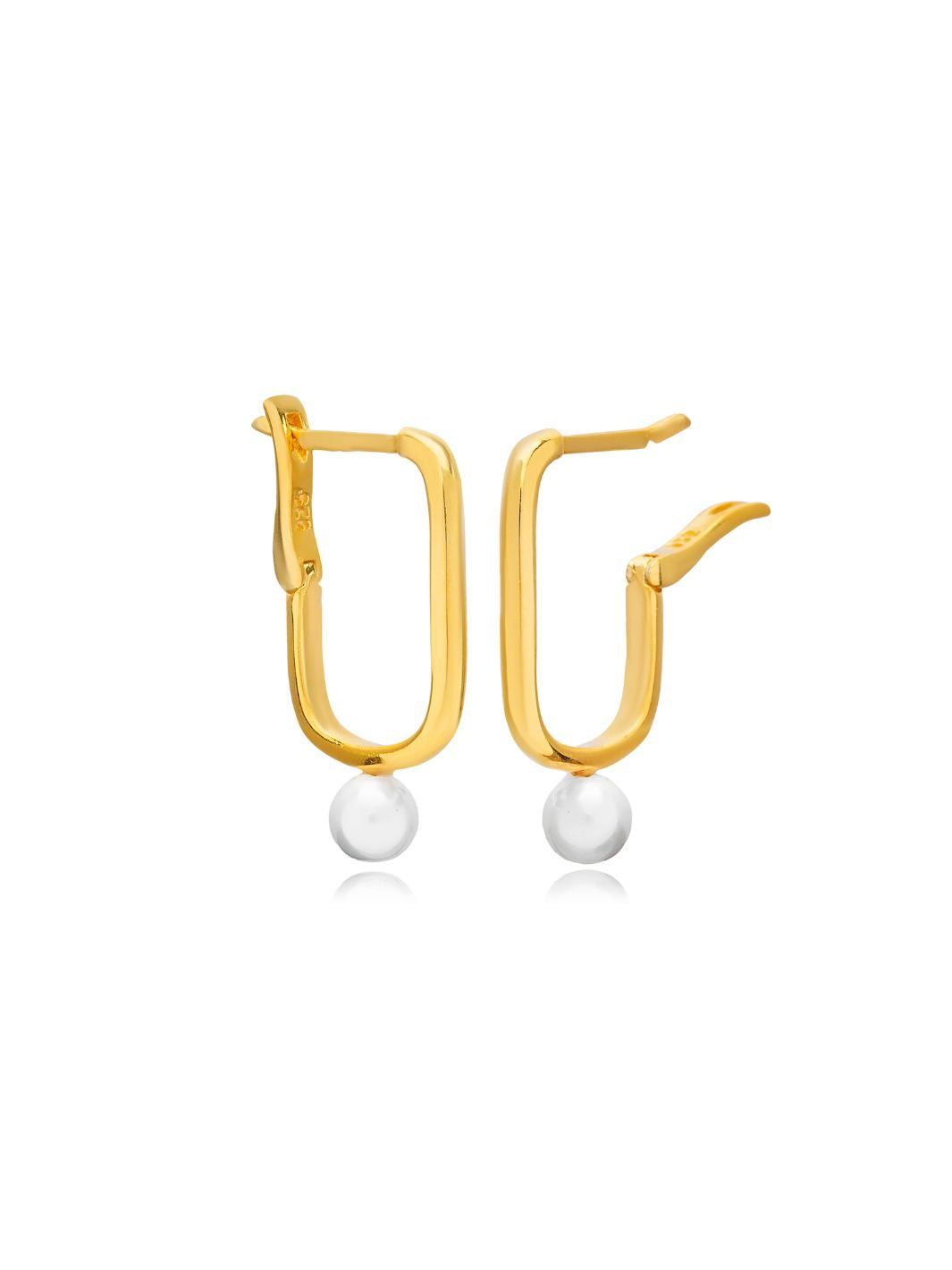 New to the Aphrodite Pearl Collection, these 18ct Gold Vermeil hoop earrings have a great contemporary shape and are finished with a feminine freshwater pearl. Easy to wear and so elegant, these 18ct gold vermeil pearl hoop earrings will add that finishing touch to any outfit, whatever the occasion.