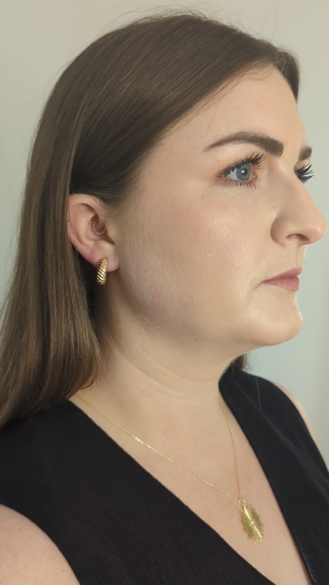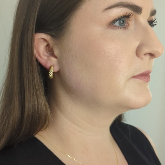 Crafted with 18ct Gold Vermeil Sterling Silver, our Danu half hoop earrings showcase a classic twist design for a touch of timeless elegance. Perfect for adding a sophisticated touch to any outfit.