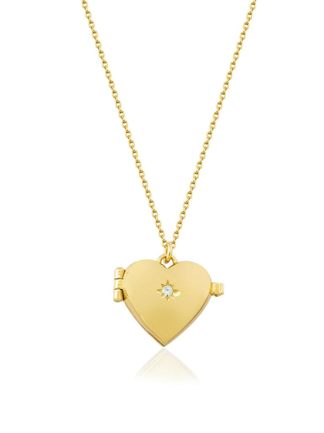 This 18ct Gold Vermeil Sterling Silver locket necklace features a North Star motif and delicate sparkling cubic zirconia, all crafted with a heart-shaped design. The North Star is symbol of direction and guidance, and our pieces from this collection remind us to stay true to our own unique journey through life.